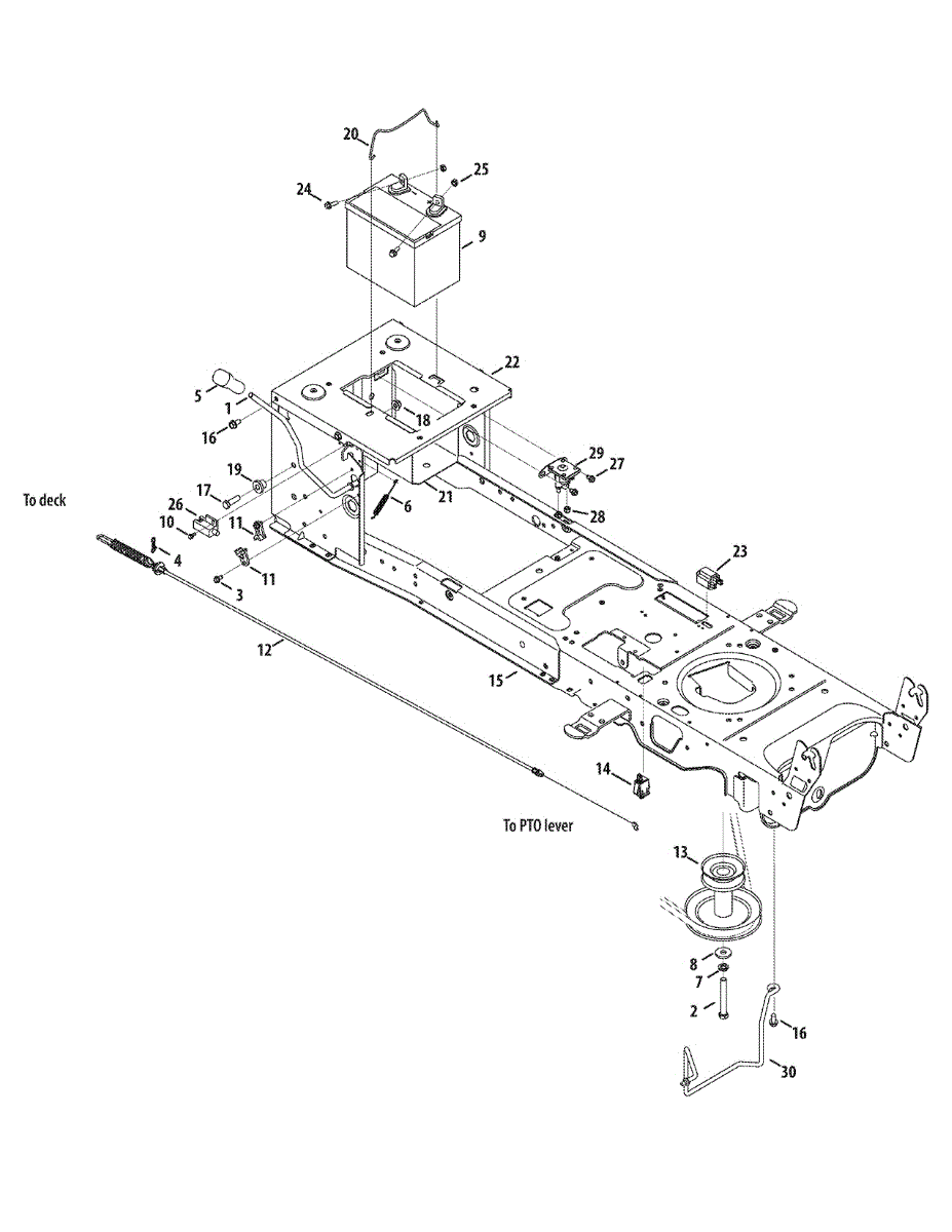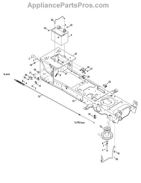 Secures the battery in your lawn tractor or riding mower. Replace if cracked, broken, or missing to prevent battery movement and secure mounting.