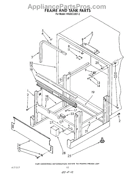 Parts for Whirlpool 4KUDC220T3: 10 - Frame And Tank Parts