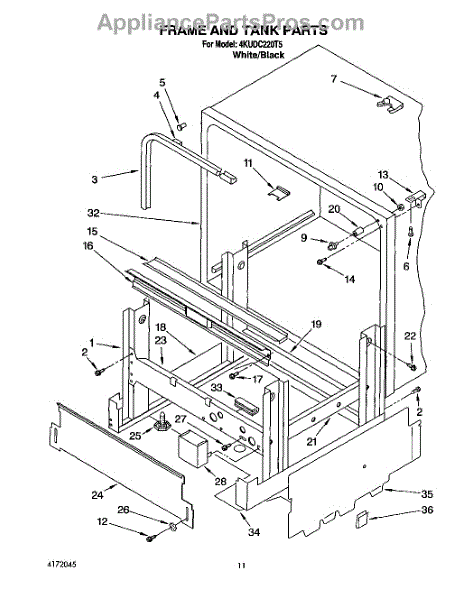 This factory screw secures appliance components to their mounting points. Replace missing, worn, or stripped hardware to restore a tight fit, proper alignment, and quieter operation across the affected assembly.