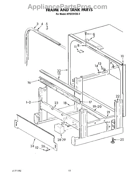 Parts for Kitchenaid KPDC610S2: 09 - Frame And Tank Parts