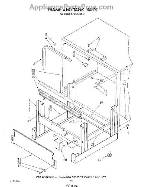 Parts for Kitchenaid KPDC610S3: 10 - Frame And Tank Parts