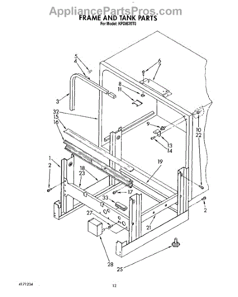 Parts for Kitchenaid KPDI620T0: 10 - Frame And Tank Parts