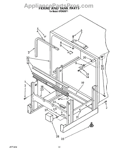 Parts for Kitchenaid KPDI620T1: 10 - Frame And Tank Parts