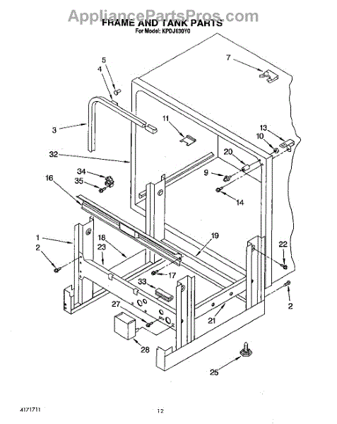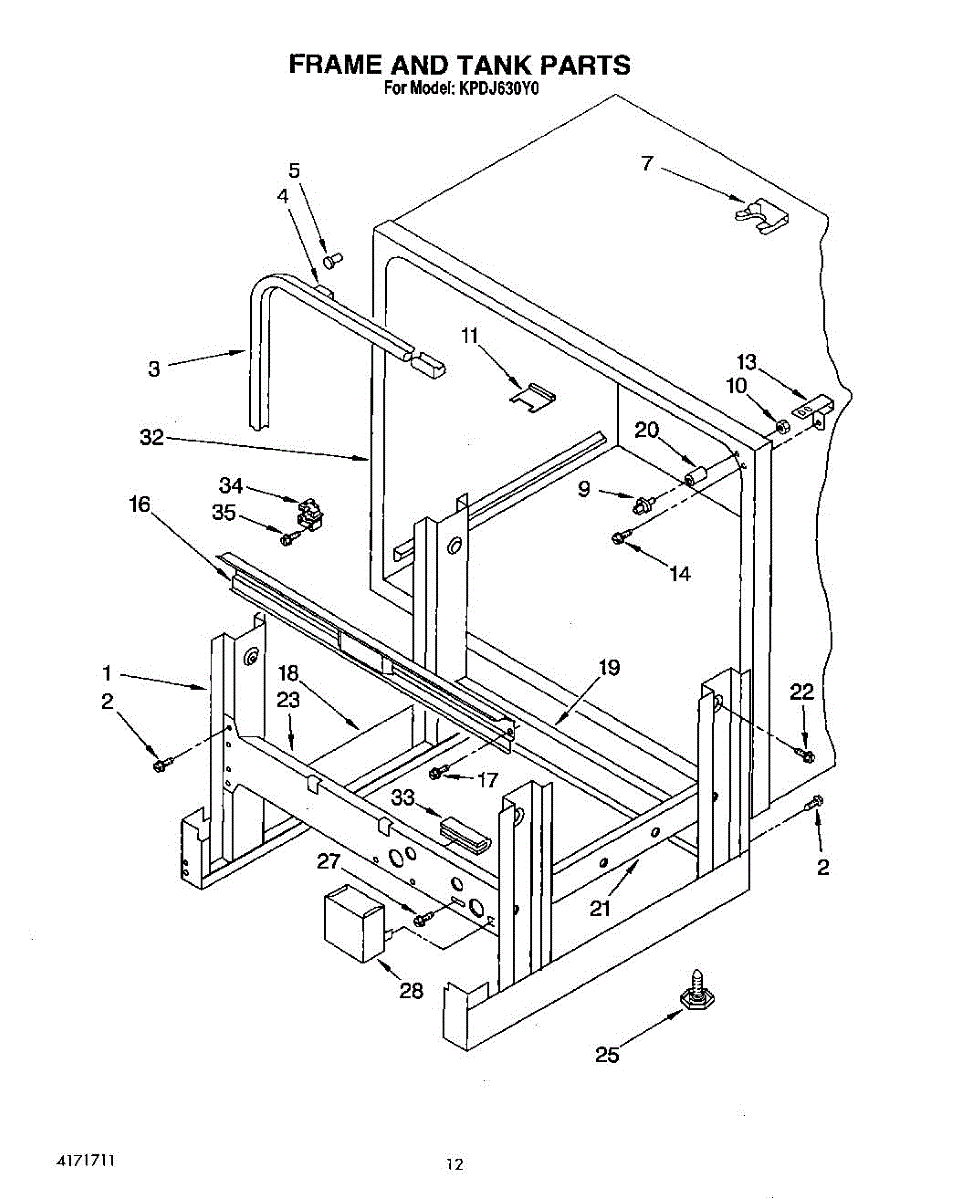 Parts for Kitchenaid KPDJ630Y0: 10 - Frame And Tank Parts