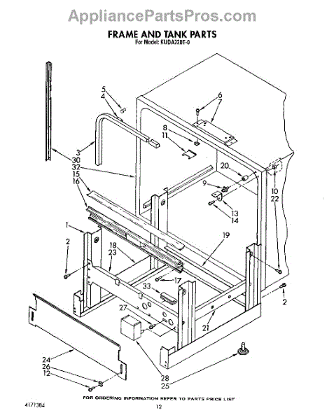 Parts for Kitchenaid KUDA220T0: 10 - Frame And Tank Parts