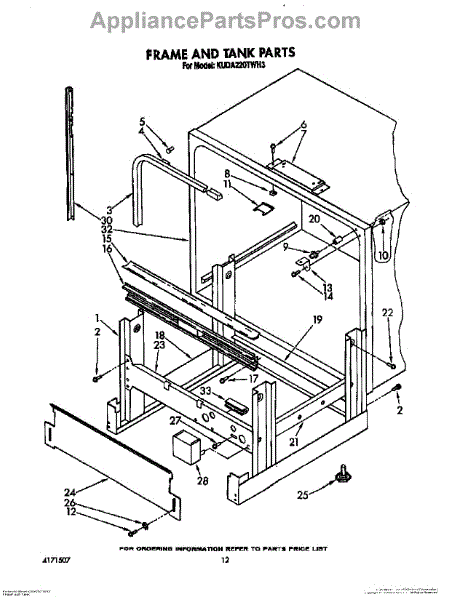 Parts for Kitchenaid KUDA220TWH3: 10 - Frame And Tank Parts