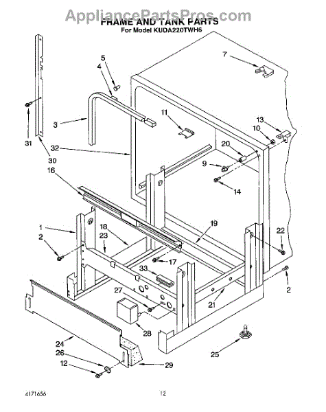 Parts for Kitchenaid KUDA220TWH6: 10 - Frame And Tank Parts