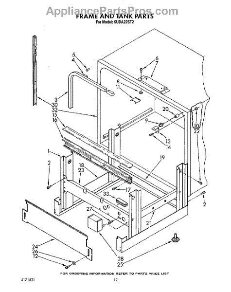 Parts for Kitchenaid KUDA22ST2: 10 - Frame And Tank Parts
