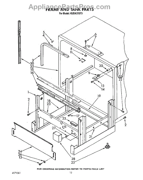Parts for Kitchenaid KUDA22ST3: 10 - Frame And Tank Parts