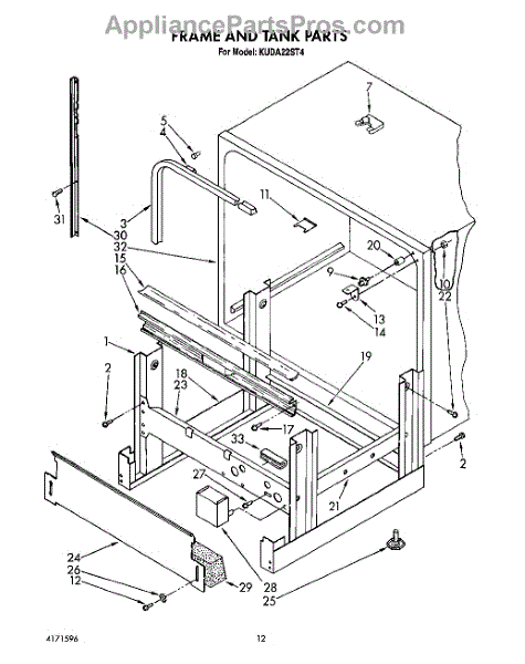 Parts for Kitchenaid KUDA22ST4: 10 - Frame And Tank Parts