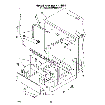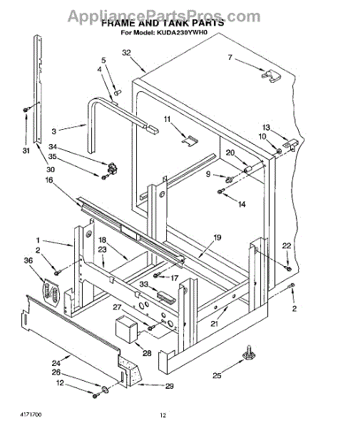 This factory screw secures appliance components to their mounting points. Replace missing, worn, or stripped hardware to restore a tight fit, proper alignment, and quieter operation across the affected assembly.