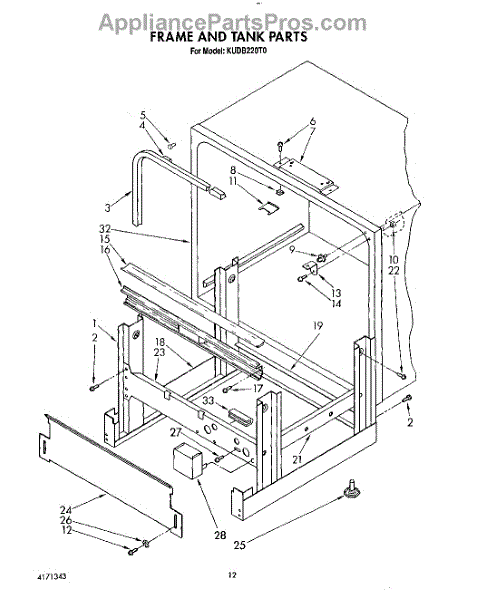 Parts for Kitchenaid KUDB220T0: 10 - Frame And Tank Parts