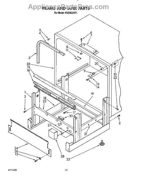 Parts for Kitchenaid KUDB220T1: 10 - Frame And Tank Parts