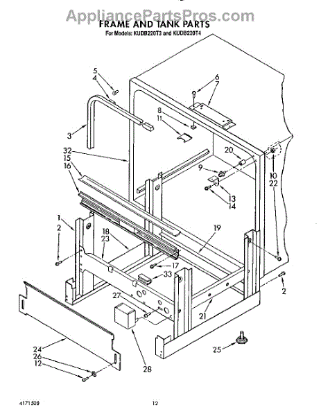 Parts for Kitchenaid KUDB220T3: 10 - Frame And Tank Parts