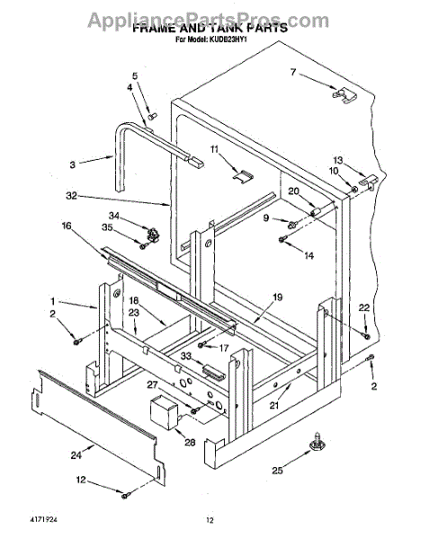 Parts for Kitchenaid KUDB23HY1: 09 - Frame And Tank Parts