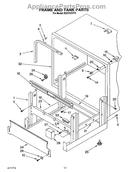 Parts for Kitchenaid KUDD23HY0: 10 - Frame And Tank Parts