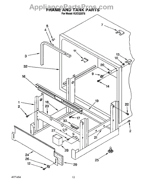 Parts for Kitchenaid KUDI220T6: 10 - Frame And Tank Parts