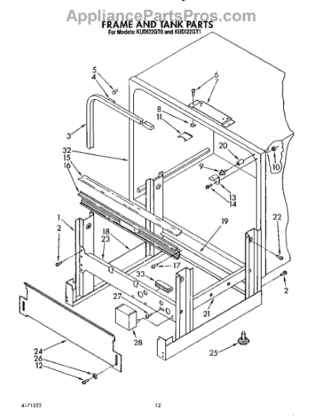 Parts for Kitchenaid KUDI22GT0: 10 - Frame And Tank Parts