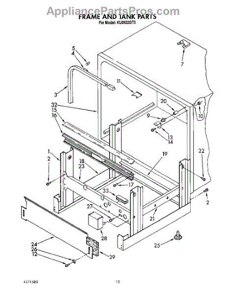 Parts for Kitchenaid KUDI22GT2: 10 - Frame And Tank Parts