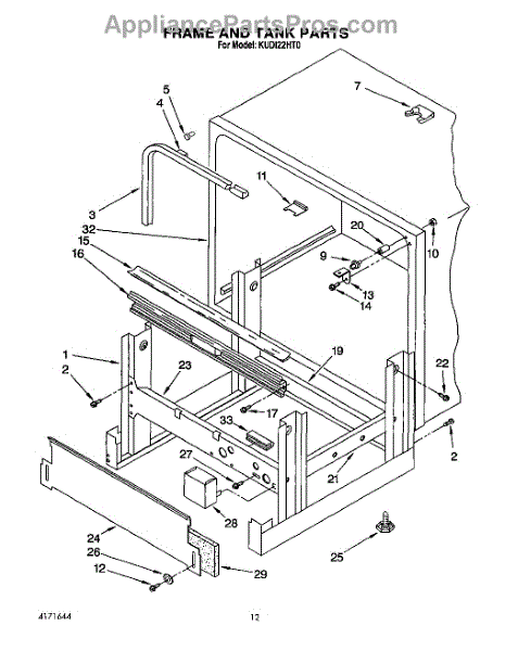 Parts for Kitchenaid KUDI22HT0: 10 - Frame And Tank Parts