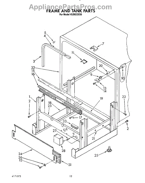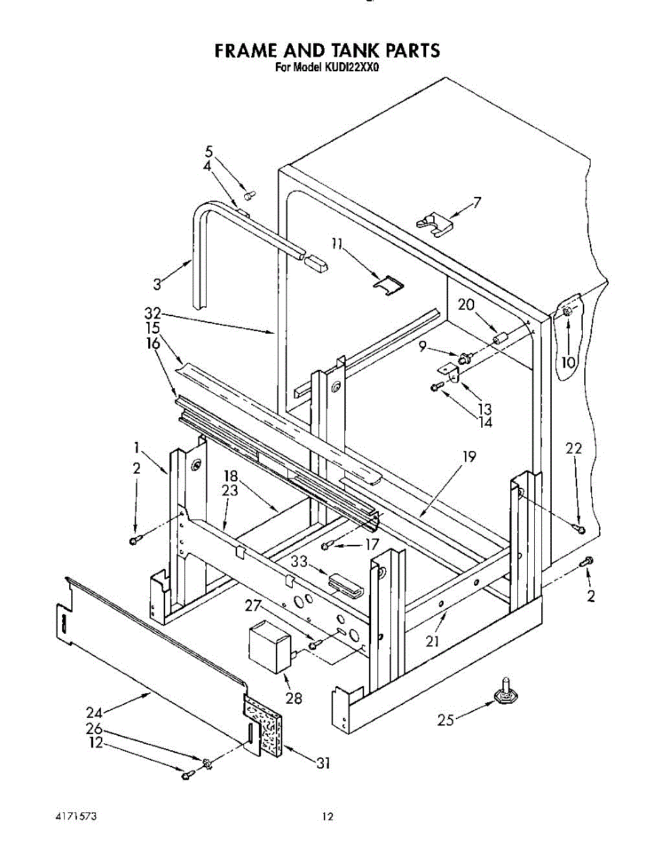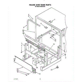 Parts for Kitchenaid KUDI22XX0: 10 - Frame And Tank Parts