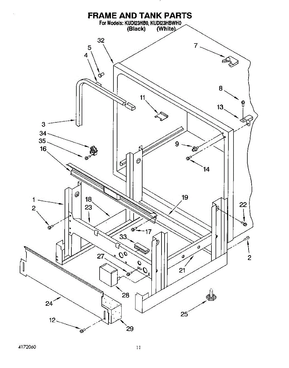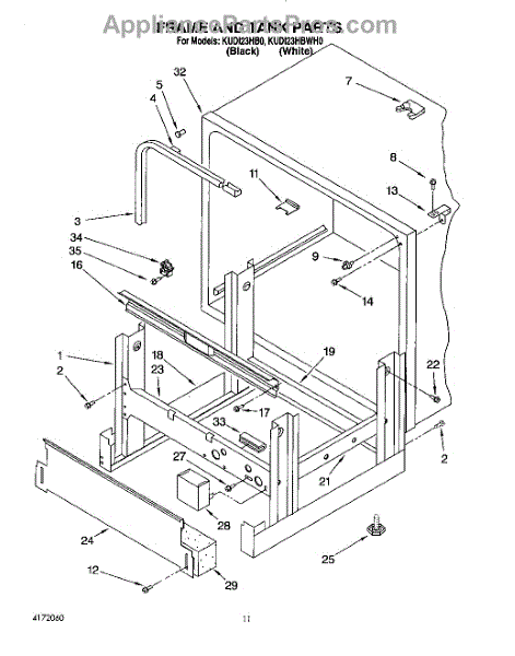 Parts for Kitchenaid KUDI23HB0: 09 - Frame And Tank Parts