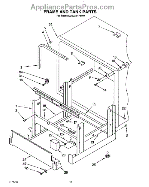 Parts for Kitchenaid KUDJ23HYWH0: 10 - Frame And Tank Parts