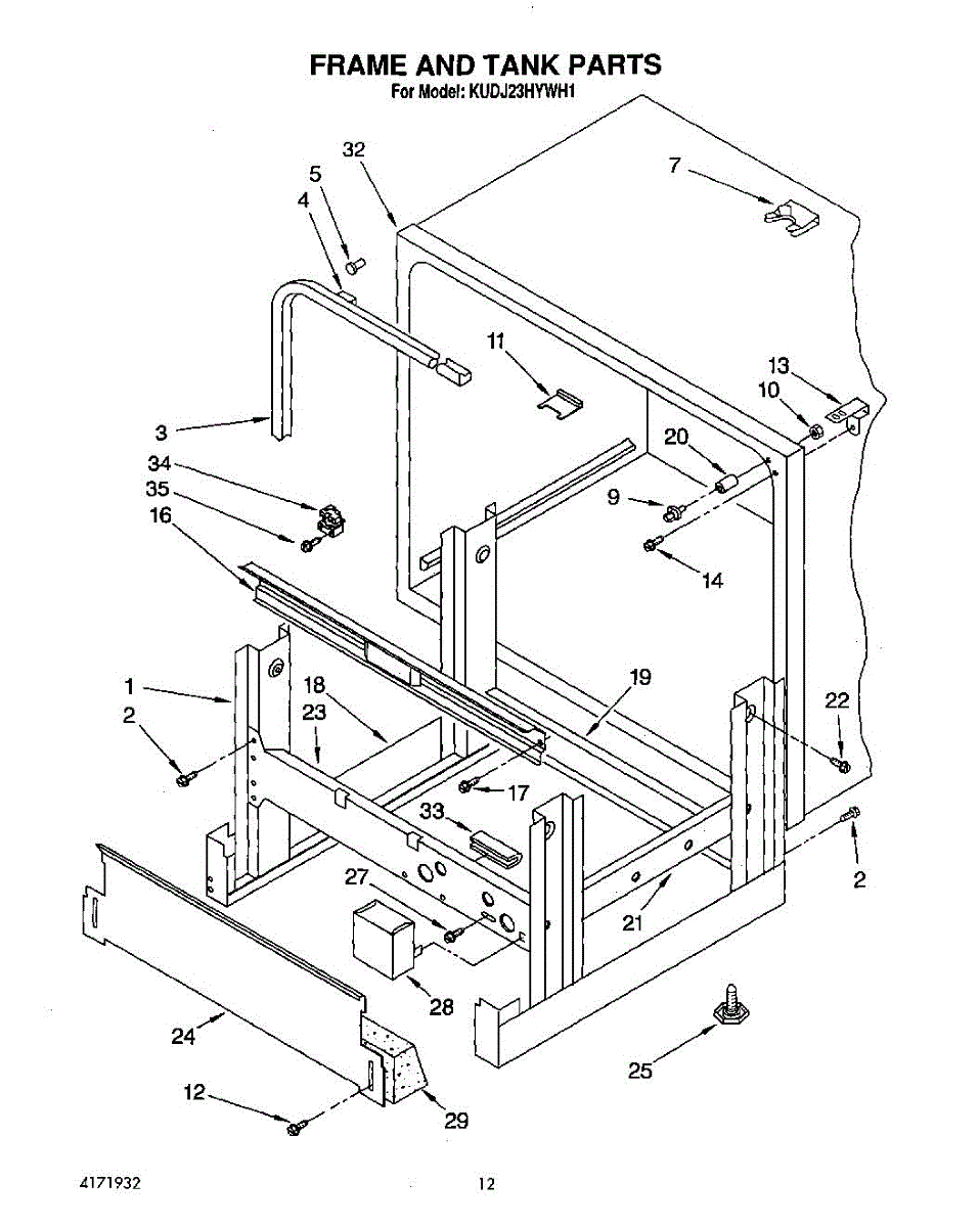 Parts for Kitchenaid KUDJ23HYWH1: 09 - Frame And Tank Parts