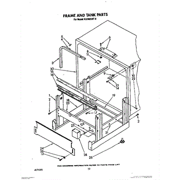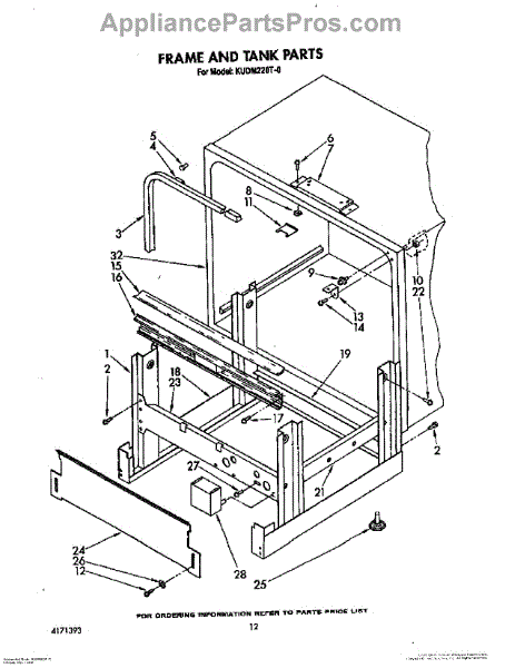 Parts for Kitchenaid KUDM220T0: 10 - Frame And Tank Parts