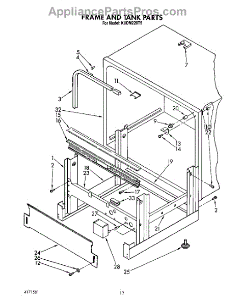 Parts for Kitchenaid KUDM220T5: 10 - Frame And Tank Parts