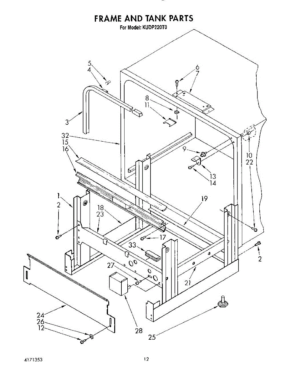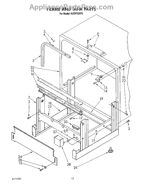 Parts for Kitchenaid KUDP220T0: 10 - Frame And Tank Parts