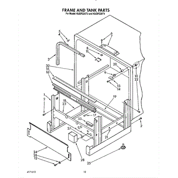 Parts for Kitchenaid KUDP220T4: 10 - Frame And Tank Parts
