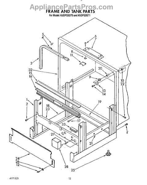 Parts for Kitchenaid KUDP22GT0: 10 - Frame And Tank Parts
