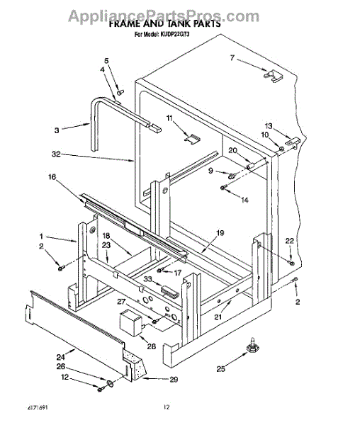 Parts for Kitchenaid KUDP22GT3: 10 - Frame And Tank Parts