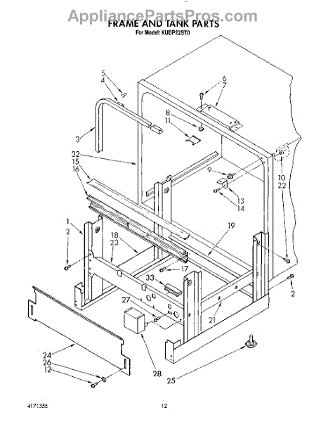 Parts for Kitchenaid KUDP22ST0: 10 - Frame And Tank Parts