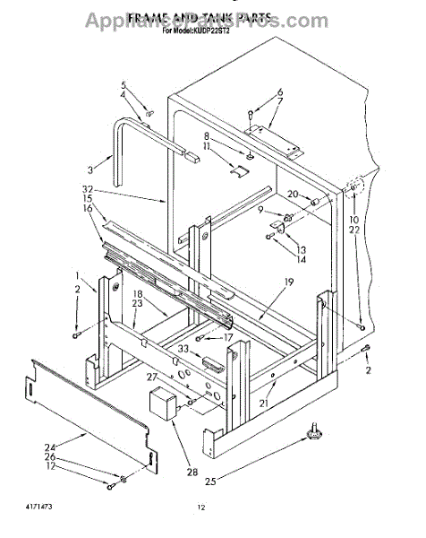Parts for Kitchenaid KUDP22ST2: 10 - Frame And Tank Parts