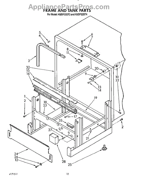Parts for Kitchenaid KUDP22ST4: 10 - Frame And Tank Parts