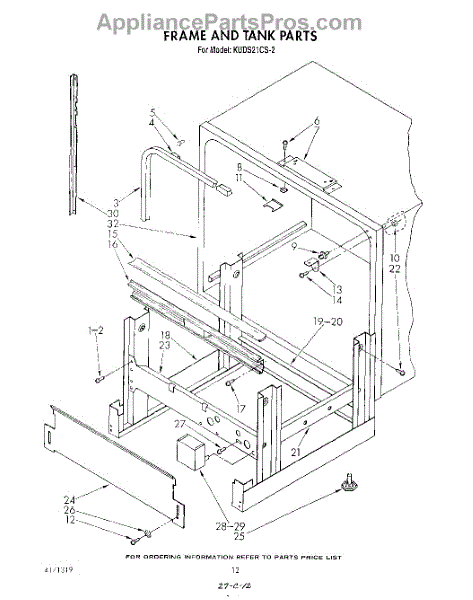 Parts for Kitchenaid KUDS21CS2: 10 - Frame And Tank Parts