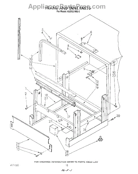 Parts for Kitchenaid KUDS21MS2: 10 - Frame And Tank Parts