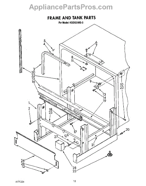 Parts for Kitchenaid KUDS21MS3: 10 - Frame And Tank Parts