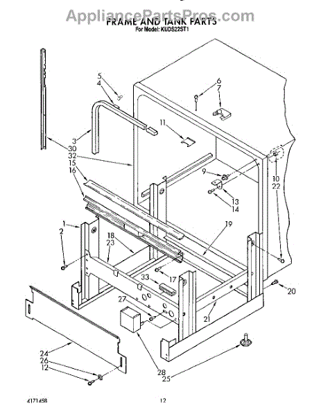 Parts for Kitchenaid KUDS22ST1: 10 - Frame And Tank Parts