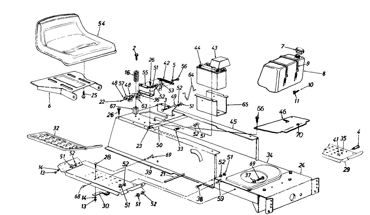 Parts for Power Kraft 134G690G088 / 1994: Frame, Upper / Fuel Tank / Battery / Seat Parts