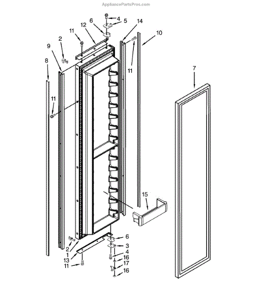 This shallow freezer door bin mounts on the inner door and restores organized storage for smaller items. Replace a cracked, loose, or missing bin to keep packages secure and easy to access.