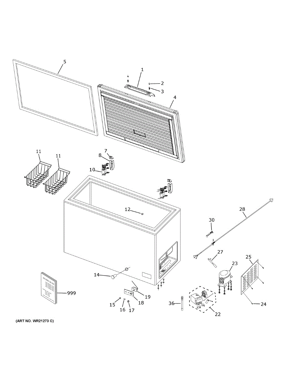 Storage basket for chest freezers. Hangs inside freezer compartment to organize smaller items. Replace if basket is cracked, bent, or missing.