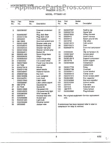 This is a compressor used in several types of home appliances. The compressor is designed to take cold gas in the appliance and place it under pressure so the gas raises in temperature. It is then moved through the refrigerator system to ensure the unit stays cold throughout the appliance. This part can become damaged or malfunction, which may cause the motor to stop running, make the motor noisier, or cause the motor to never stop running.If this happens, the compressor will need to be replaced. A basic set of tools will be needed. A pair of work gloves can also be useful. First, locate the compressor as it may be in various locations depending on the appliance model. Unplug the appliance before removing the compressor. Install the new compressor using the original bolts and nuts before turning the power back on and resuming normal use.This part is sold on an individual basis. The compressor is made to be used with refrigerators, ranges, stoves, ovens, air conditioners, and freezers created by Gibson, Frigidaire, Kelvinator, Montgomery Wards, Westinghouse, Tappan, JCPenney, Universal, and Kenmore. It is an authentic OEM replacement part directly sourced from the manufacturer.