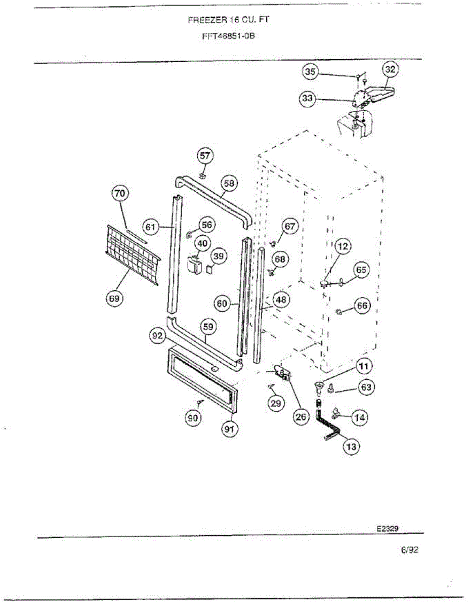 This top support (left) is a molded mounting bracket that secures the refrigerator cabinet or inner liner at the cabinet's upper-left corner to restore proper alignment and stable fit of the top section. It replaces a cracked, broken or missing upper-left support. What it does: