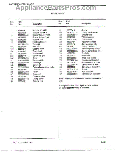 Parts for Frigidaire 46351-0B: Freezer 16 Cubic Feet Page 6 Parts
