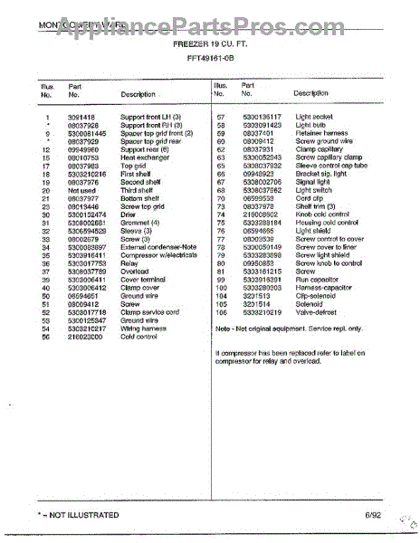 This is a compressor used in several types of home appliances. The compressor is designed to take cold gas in the appliance and place it under pressure so the gas raises in temperature. It is then moved through the refrigerator system to ensure the unit stays cold throughout the appliance. This part can become damaged or malfunction, which may cause the motor to stop running, make the motor noisier, or cause the motor to never stop running.If this happens, the compressor will need to be replaced. A basic set of tools will be needed. A pair of work gloves can also be useful. First, locate the compressor as it may be in various locations depending on the appliance model. Unplug the appliance before removing the compressor. Install the new compressor using the original bolts and nuts before turning the power back on and resuming normal use.This part is sold on an individual basis. The compressor is made to be used with refrigerators, ranges, stoves, ovens, air conditioners, and freezers created by Gibson, Frigidaire, Kelvinator, Montgomery Wards, Westinghouse, Tappan, JCPenney, Universal, and Kenmore. It is an authentic OEM replacement part directly sourced from the manufacturer.