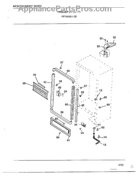 This top support (left) is a molded mounting bracket that secures the refrigerator cabinet or inner liner at the cabinet's upper-left corner to restore proper alignment and stable fit of the top section. It replaces a cracked, broken or missing upper-left support. What it does: