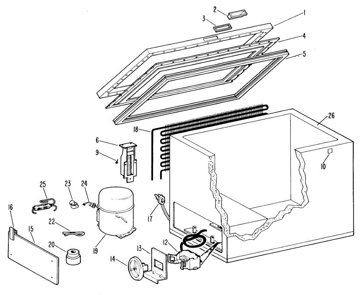 Supplies electrical power from wall outlet to refrigerator. Replace this cord if cut, frayed, overheated, or damaged to restore safe electrical connection.